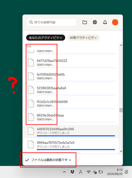「ファイルは最新の状態です」なのに「同期を待機中...」のファイルが多数ある