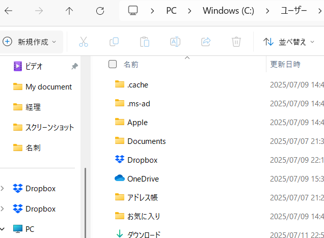 6)Cドライブユーザー配下に残ったDropboxだけ削除させる。
