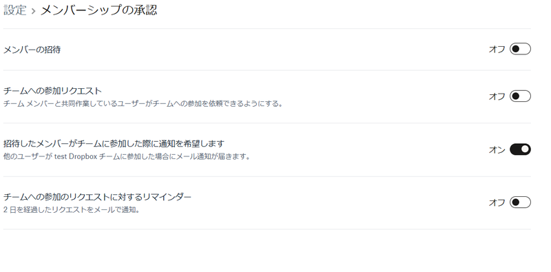こちらは、管理者以外のメンバーが他のメンバーを招待できなくする機能ですが、