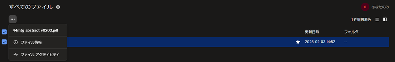 または、ファイルの左にチェックを入れ、上に「・・・」アイコンが表示されますので、