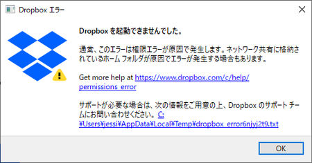 「通常、このエラーは権限エラーが原因で発生しています。ネットワーク共有に格納されているホームフォルダが原因でエラーが発生する場合もあります」このメッセージが表示された下の青い文字をクリックすると下のようなメッセージが出てチンプンカンプンです。よろしくお願いします。