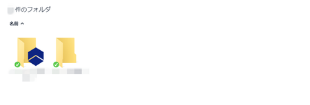 フォルダの概要スペースにメモ書きを追加したり、中にあるファイルをそのスペースに固定したりすると、人のアイコンから青いボックスのアイコンに変わります。共有フォルダだけでなく、個人のフォルダも、概要スペースに何かを追加すると同じ青いボックスのアイコンになるようです。