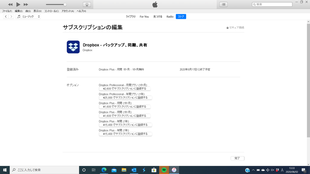 9.ご利用のアカウントは請求サイクルの最終日に Dropbox Basic(無料)にダウングレードされます。