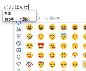 ・「け」を入力すると、「:」押下と判断されたのか絵文字...