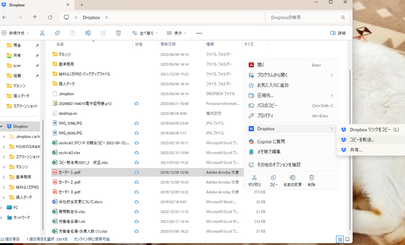 会社での使用ですが、総務をやっていて、従業員のマイナンバーをドロップボックス( 個人アカウント)に入れております。