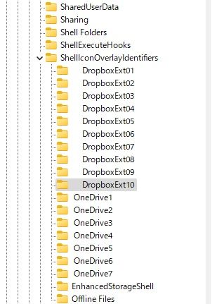 - 次の順にフォルダ間を移動します:HKEY_LOCAL_MACHINE > SOFTWARE > Microsoft > Windows > CurrentVersion > Explorer > ShellIconOverlayIdentifiers