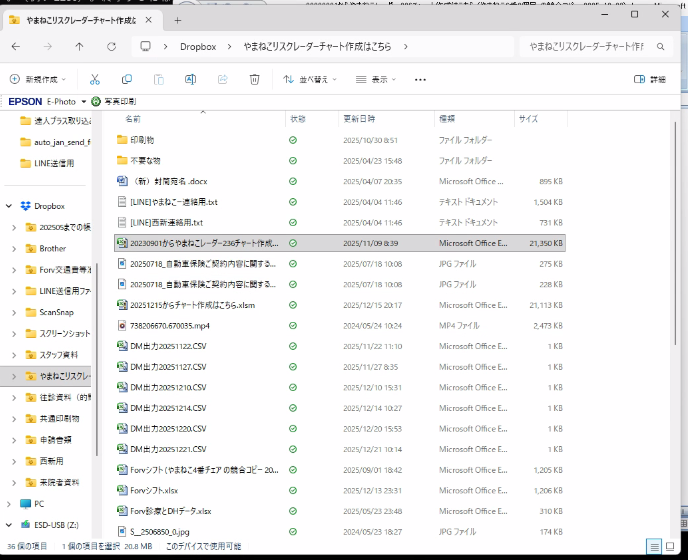 Dropboxフォルダ内で管理しているExcelファイルについて、