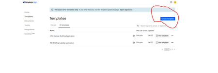 Hello: I am a new Business Team plan Admin member (3 user), and creating new templates in Dropbox Sign (Dropbox signatures redirects me automatically), but I do not have an option to "create templa...