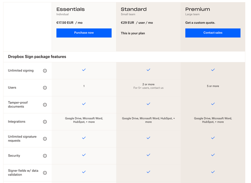 This article mentions that there is a limit on the number of signature requests you can make if you're not on a paid plan.