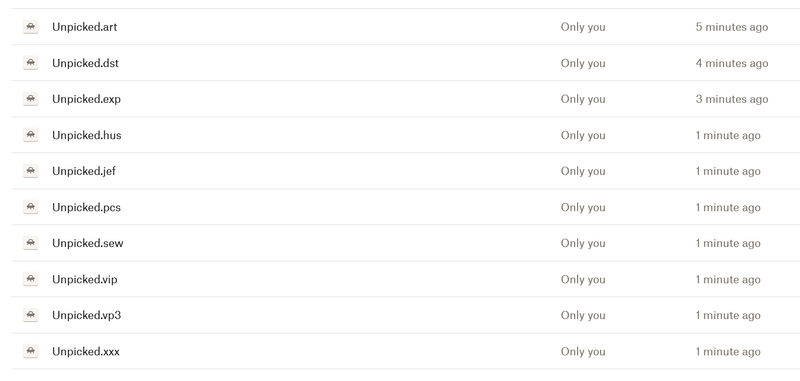Embroidery machines use fairly unique file types and DropBox does not support the following file types ...