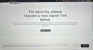 Hello! This morning I received a strange email from noreply@mail.hellosign.com and it was for a signature for a subscription for Geek $quad(?). It's $399 USD and I have no idea what this service would be for. I Googled the "customer support team" phone number and it came back as potentially being for an escort service in Florida. I checked my bank accounts, Paypal and Venmo, and don't see any pending charges. The signature request is also from an email and name I do not recognize and it appears they're a student at an Italian university(their email may have been hacked I'm guessing). So yeah, definitely not convinced this is a legit charge, but I can't lose $399 dollars either, so I guess I'm trying to see if this legit, or just spam. The fact that it was sent from a legitimate Dropbox email gives me pause. No, I did not click the links, but when I hover my cursor over the links in Chrome, I can see the URLs are for official Dropbox services. I called Geek Squad, just to confirm that there is no account in my name. I'm not sure if there's a specific way to contact Dropbox directly about this, or if this is the appropriate method. Thanks to anyone for offering help! [Removed as per Community Guidelines]Solved10KViews2likes13CommentsHelloSign - Cannot Move to Next Page