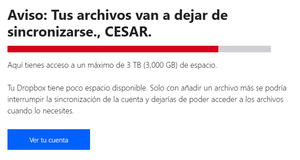 Estoy llegando al limite de almacenamiento en mi cuenta Dropbox Essentials y me gustaria saber cómo puedo aumentar la capacidad de mi cuenta en dropbox: actualmente tengo 3TB y sólo trabajo yo, es decir, sólo soy un unico usuario. Necesito más capacidad. ¿Qué opciones me da Dropbox, por favor? Necesito conocer las posibilidades para poder tomar una decisión, pues no me gustaría tener que migrar a otra plataforma. Gracias.170Views0likes1Comment