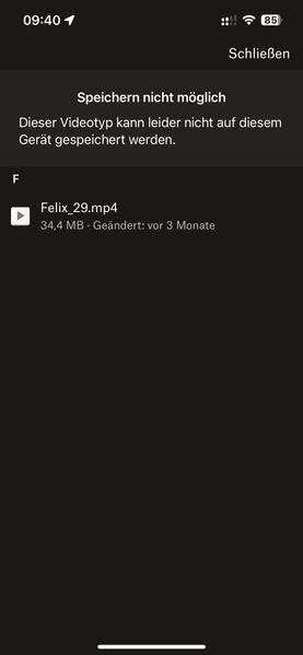 Ich habe Dropbox schon häufiger dafür genutzt, Videos weiterzugeben. Hatte nie Probleme. Jetzt wird plötzlich "Dieser Videotyp kann leider nicht auf diesem Gerät gespeichert werden" angezeigt. Die Videos wurden genau so exportiert wie alle anderen davor, mit denen es kein Problem war. Ich habe bereits versucht die Dateigröße zu reduzieren, sie sind alle in .mp4 ... nichts funktioniert. Was könnte ich noch tun bzw. woran könnte es liegen?993Views0likes5CommentsFehler beim Export