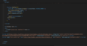 I am just starting out with the Dropbox SDK in a JavaScript app and am being frustrated because it doesn't seem to be able to return the files in my 'Apps' folder even though I'm following the initial tutorial at https://www.dropbox.com/developers/documentation/javascript#tutorial. The alert says 'undefined'. Here's my code: I also get this error message: Please can anyone help?Dropbox Access Tokens - How do they work?