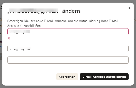 Liebe Community, ich habe schon sämtliche Foren durchsucht, aber ich komme nicht weiter. Ich möchte meine Emailadresse ändern, bekomme aber keine Bestätigungsmöglichkeit. ich habe auch "no-reply@dropbox.com" shcon zu meinen Kontakten hinzugefügt usw. aber es kommt auch keine richtige Fehlermeldung sondern nur ein "x" bei meiner neuen Email-Adresse (siehe Screentshot) weiter komme ich nicht, das ist eine Sackgasse! Wer kann mir helfen??? DANKE email addresses removed per Community Guidelines239Views0likes2CommentsVerknüpfen 3 Gerät