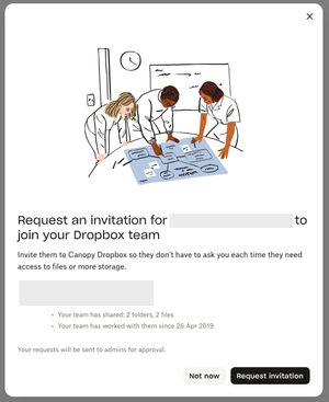 276 TopicsDropbox Business: Disable "Request an invitation" popup for users after sharing