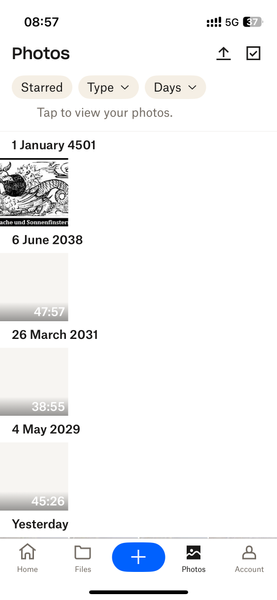 Hi I have an iphone and when receiving images from workers I usually upload to dropbox, click on rename and edit it then upload. Now it won't allow me to rename, it still "says" rename there but it doesn't work, So when it picks up image from text it says Attachment, I can't upload more than one as it shows as a duplicate. Is this just me, as this system was working well until now.146Views0likes5CommentsThe dates of images and videos under Photos tab on iOS are in future millennia.