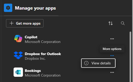 Hi, We rely on Dropbox for making important business files available to remote colleagues. However, we also use Veritas Backup Exec to take daily copies of our entire network including Dropbox files and, up to now, it has worked perfectly, including our Dropbox files on disk. Having recently installed Windows Server 2025 (for running our network and BackupExec 2025) and with Windows 11 on all workstations, we find that attaching to our physical (Business) Dropbox files on the master hard drive causes the BackupExec backup to fail with the message: "Dropbox was not found or could not be accessed"; Completed Status: Failed Final Error: 0xe0008488 - Access is denied Final error category: Security Errors. This is despite all Dropbox folders & files being visible during backup selection. All network permissions are correct and verified and work perfectly for folders alongside the Dropbox folder. Please can somebody tell me what is different about the Dropbox folders on disk and how to fix this? Many thanks. Stephen102Views0likes3CommentsThere's no option to remove the Dropbox for Outlook add-in on Windows 11.