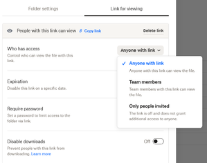 Hi all, I have a problem with a specific Dropbox setting. I know that what I want to do should be possible, but unfortunately, I can't figure it out. That's why I need your help. It's about the following: I want to share files with clients using Dropbox. I don't want these clients to have to install Dropbox themselves, because we don't want to drive up extra costs for the clients. But I want to prevent the folder links from being made public or shared with people who aren't supposed to have access. How did I set this up? Inside Dropbox, I created a client folder Within this client folder are several subfolders In the LINK FOR VIEWING settings of the client folder and in the subfolders, I selected 'ANYONE WITH LINK' under 'Who can access', because the clients are not added as members in Dropbox. We don't send the links directly to the client, but we copy and paste the shared link into Webflow, where we have created a client page. The link refers to a specific folder on the client page The client has access to the client page. Logins are handled via Memberstack. Using the above, clients can log in to the client page and have access to their files. But what is the issue now? The client can copy the link from the folder and forward this link to someone who is not logged in to the client page. This other person can then use the link to gain access to the Dropbox folder. And that last part is exactly what we want to prevent. How can I prevent this? I have a Dropbox Business Plan and I am the admin. I hope anyone can help me out.79Views0likes6CommentsWhat are the best practices when sharing files with other users while on a Dropbox team?