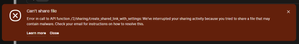 I received a pop-up dropbox notification to share with a "Losurdo Inc". I never received one from someone I don't know or action I didn't make. I pressed it to see what it was but it popped up and I deleted it. It remained in activity and recent files without the 3 dots. All my other files have them so I can delete. The file was named " Losurdo Inc_Missing PO#32686.docx". I disconnected all my devices and Uninstaller then installed back. I no longer see it, but how can a party have access to dropbox to send a dropbox notification? Have I been hacked? Any advise would be helpful. Thanks, K2A53Views0likes1Comment"Unable to complete sharing" error for the last two days - How can I resolve this?